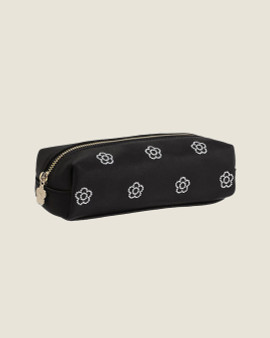 This pen case features a matte, faux leather exterior adorned with an enamel daisy patch. Its compact square shape and gold-tone logo hardware offer a chic and functional case perfect for storing your favourite stationary.