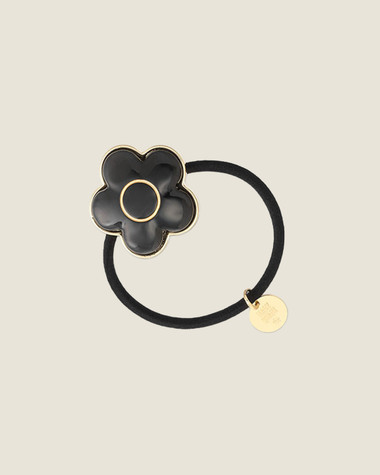 This marble daisy hair tie features a puffy daisy shape expressed in epoxy stones and marble detailing that brings nuanced colour variation. The centre ring of the daisy features a gold epoxy accent. This hair tie pairs beautifully with soft, feminine hairstyles and makeup looks, adding a subtle yet eye-catching accent.
