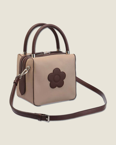 This elegant 2-way shoulder bag features a smooth faux-leather finish and iconic daisy motif for a sleek, modern look. Designed for versatility, it can be carried by hand or worn as a shoulder/crossbody bag using the detachable strap. Compact yet practical, it offers enough space for daily essentials and includes 2 interior pockets for easy organisation.